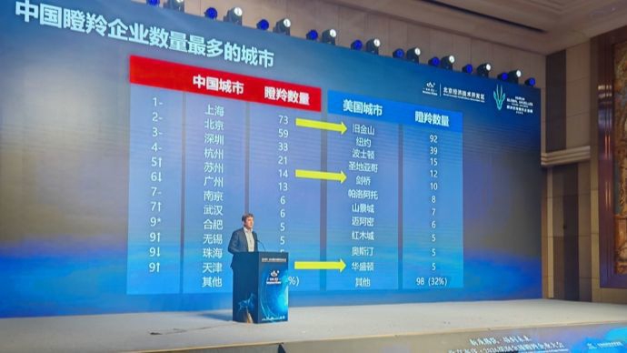 从城市来看,瞪羚企业数量除了旧金山、上海、北京排前三,纽约(39家)、深圳(33家)、伦敦(28家)、杭州(21家)、波士顿(15家)、苏州(14家)和广州(13家)排全球第四到十位。